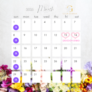 3月の店休日のお知らせ